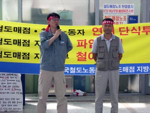 2005년 파업과 단식농성을 전개하던 시기에도 철도매점 노동자들은 1년 365일 단 하루의 휴일도 없이 하루 평균 16시간 이상 근무와 불규칙 장시간 노동에 시달리고 있었다. 이들은 급여명세서가 아니라 월 매출액에 별도로 정해진 용역비 지급률을 적용한 금액의 ‘용역비 명세서’를 받았다. 금액은 월 50만 원 수준으로 법정최저임금에도 크게 못 미쳤다. 또한 개인사업자로 분류되어 근로기준법상 휴일, 휴가와 4대보험도 적용받지 못했다.