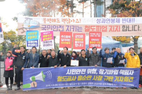 1월 22일 정부는 “쉬운 해고, 성과주의 도입 노동개악 2대 행정지침”을 발표했다. 28일에는 기획재정부 공공기관운영위원회를 통해 공공기관 전 직원 성과연봉제와 저성과자 퇴출제 시행을 위한 ‘공공기관 성과연봉제 권고안’을 확정하면서 2016년 상반기 모든 공공기관에 성과연봉제를 도입하겠다는 계획을 발표했다. 기획재정부는 이어 2월 25일 공공기관 기관장 워크숍을 열고 공공기관 성과연봉제 확대 방안을 발표하여 조기 도입 기관에 대한 인센티브를 부여하겠다고 했고, 총인건비 인상률 삭감이나 동결 페널티 방안도 추가 마련하겠다며 강제로 밀어붙였다. 3월 17일 기획재정부는 공공기관 기관장 2차 워크숍을 열어 공공기관 성과연봉제 추진 점검 회의를 개최하여 47개 기관을 성과연봉제 확대 선도기관으로 지정하여 조기 도입 확산을 유도하겠다고 발표했다. 4월 13일 총선에서 집권 여당이 패배한 이후 정부의 행보는 오히려 더 빨라졌다. 정부는 성과연봉제를 위한 평가시스템 지침 규정을 마련하도록 각 기관에 주문하고, 상반기까지 도입 완료를 목표로 이를 경영평가에 반영하겠다며 공공기관의 성과연봉제 도입을 전방위적으로 종용했다. 6월 14일 대통령이 주재하는 공공기관 워크숍을 앞두고 30개 공기업과 90개 준정부기관 모두 성과연봉제가 이사회를 통과했는데 이 가운데 51개 공공기관에서 노조 동의 없이 이사회에서 일방적 불법적으로 통과되었다. 철도공사도 노조와 보충 교섭을 진행하고 있었음에도 5월 30일 이사회를 개최해 일방적으로 성과연봉제 도입 및 관련 규정 일체를 통과시켰다.