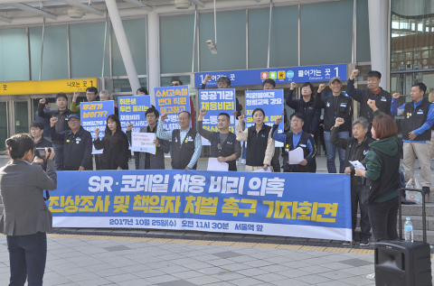철도노조가 국정감사 과정에서 SR(수서고속철도)과 한국철도공사(철도공사) 간부 자녀 특혜 채용 의혹이 불거지자 이날 오전 서울역 앞에서 기자회견 열고 “채용 비리를 척결하기 위해 철저히 진상을 조사하고 책임자를 처벌해야 한다”고 촉구함.
